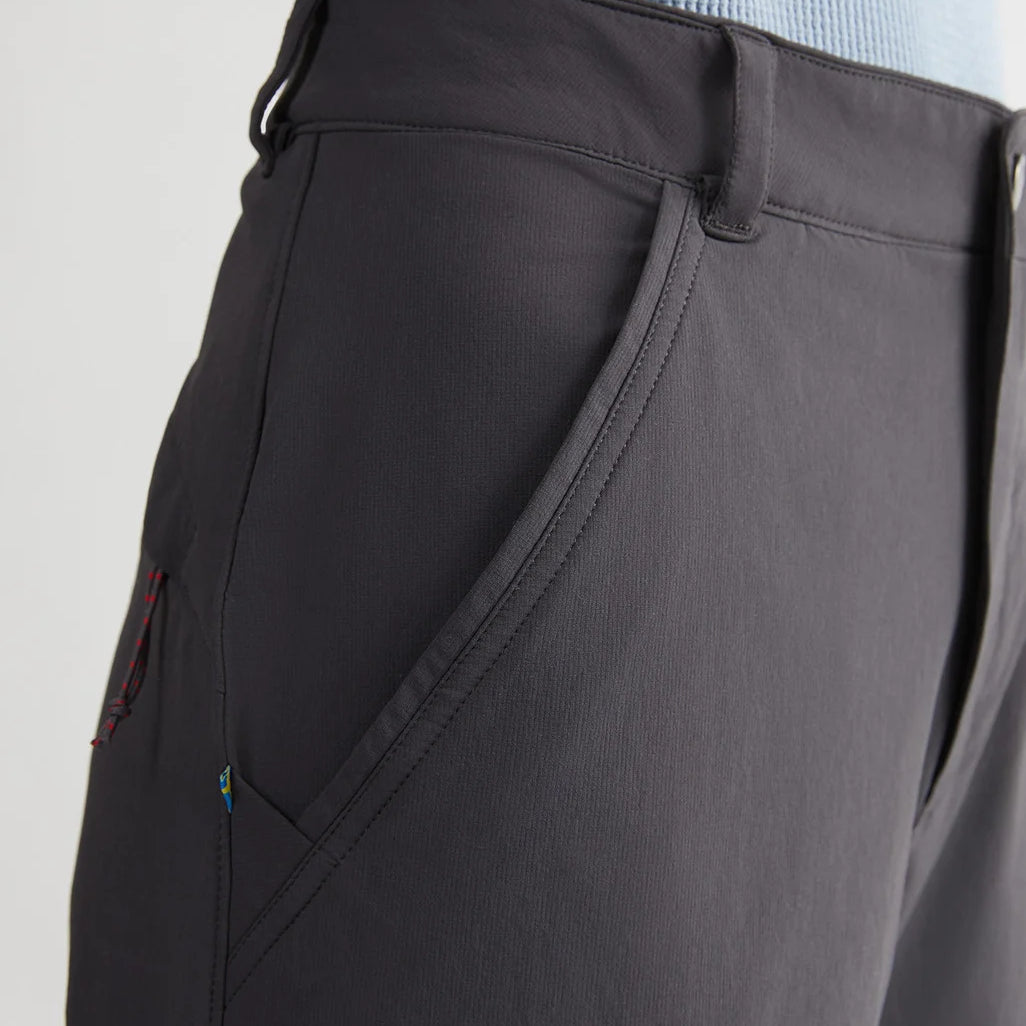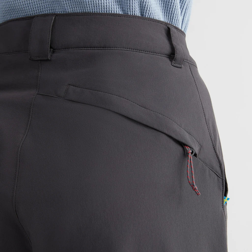 オールシーズン軽やかに使用できる最軽量ソフトシェルパンツ。ソフトな肌触りによる圧倒的な着心地と、動きの自由度を最大限に高めたストレッチ性のある生地を採用した多目的なパンツです。通気性と速乾性に優れていますので、日本のトレッキング環境にはオールシーズンにわたって活躍します。裾には、ブーツとの隙間を防いだり、小川を徒渉する際などにたくし上げることができるようアジャスターコードが付いています。軽く、動きやすく、一着でなんでもこなしていまうオールマイティなパンツは、アクティビティだけでなく旅行のお供にも最適です。 ライト・ウィンドストレッチ™ 素材は、とても軽く、汚れや水をはじき、驚くほど速く乾きます。ウィンドストレッチ™ は、優れた耐摩耗性と大きな動きを可能にするストレッチ性を備えたソフトシェル素材です。再生可能な資源から生まれたウルトラミッド®・バイオマス・ポリアミドを使用しています。通気性、吸湿性、速乾性に優れており、激しい運動にも適しています。非常に優れた耐風性を持ち、柔軟性と耐久性が重要なソフトシェル製品に使用されています。激しい使用の後も色を失ったり、ピリングすることなく、見た目の外観を維持します。 ヴァナディスシリーズに使用されているライト・ウィンドストレッチ™ 159 g/m²は、クレッタルムーセンで最も軽量で速乾性とストレッチ性に優れたソフトシェル素材です。85%のリサイクル・ポリアミドと15%のエラスティンをブレンドし、フッ素フリーの撥水加工が施されています。