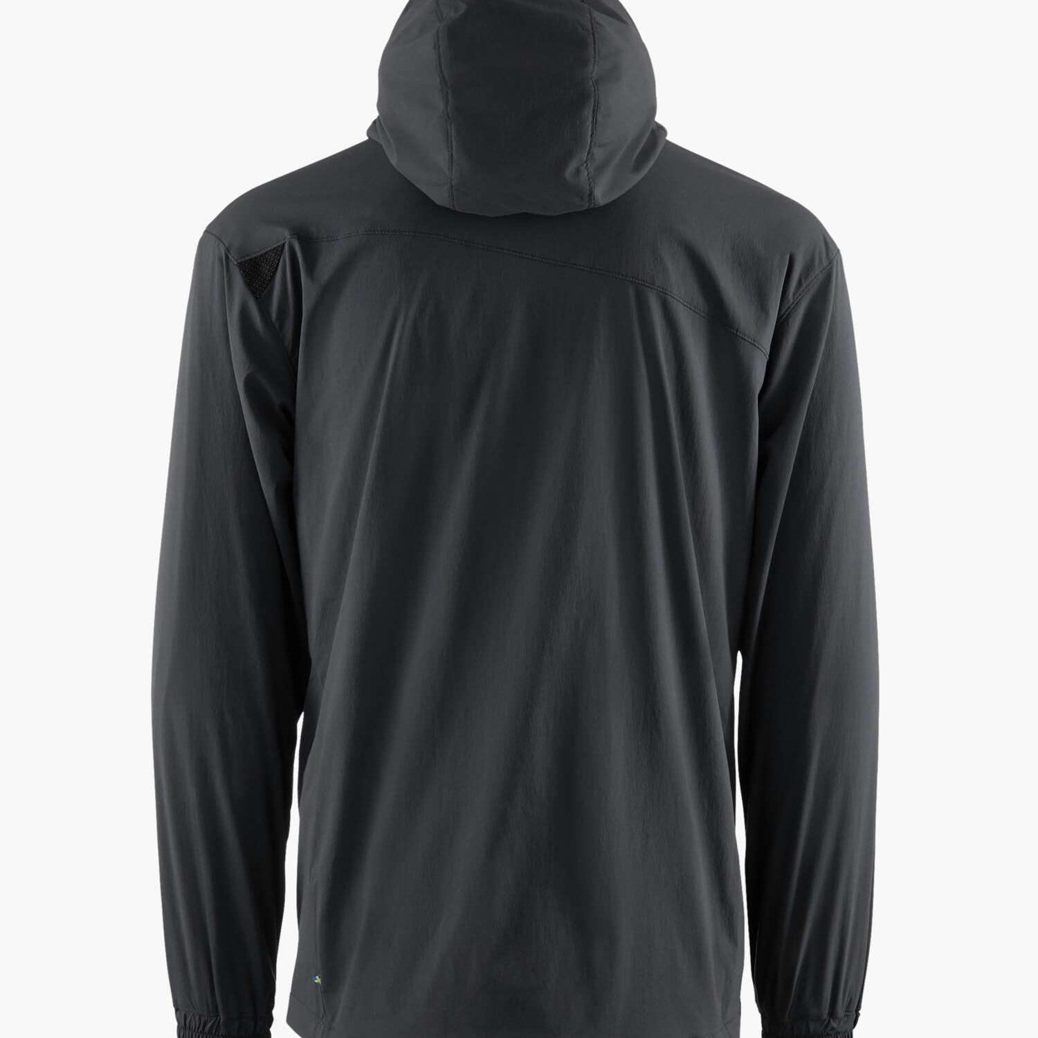 ファブリックは2層構造になっています。アウターレイヤーは2ウェイストレッチのバイオベースポリアミドシェルで、柔軟性と耐久性のためにエラスタンを混合しています。内側のレイヤーは、速乾性のあるリサイクル生分解性プリマロフト®ニットライナーで、軽い保温性と通気性を生み出します。前面に斜めに開いたジッパーで簡単にアクセスでき、3Dアジャスタブルフードでぴったりとフィットします。背中と前面に反射性の三角形があり、安全性を高めています。